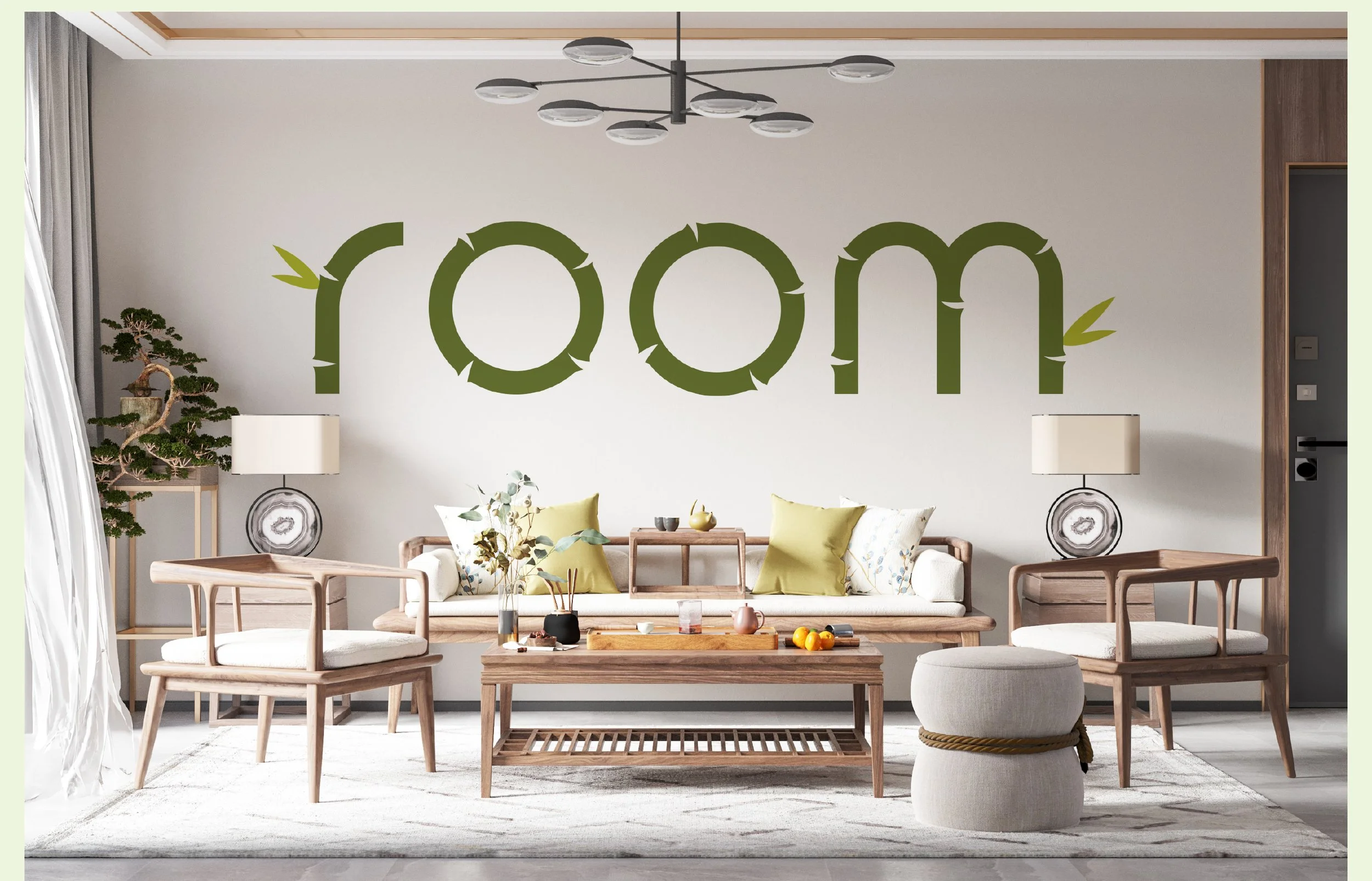 Room is a brand identity project developed for a modern, Japanese-inspired furniture store that specializes in bamboo-made pieces. Bamboo, one of the fastest-growing plants on Earth, is a highly renewable and eco-friendly resource, making it an ideal material for sustainable design. Rooted in environmental mindfulness, Room embraces minimalist aesthetics and functionality, offering furniture tailored to compact living spaces without compromising style or purpose. This project included Logo Design and Brand Identity.